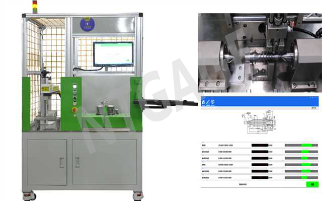 人工上料,自動(dòng)對(duì)蝸桿的跨棒距、跳動(dòng)進(jìn)行快速檢測(cè)。換型調(diào)整方便,測(cè)量結(jié)束自動(dòng)打標(biāo),工控機(jī)根據(jù)傳感器的位移變化計(jì)算測(cè)量值并進(jìn)行SPC。